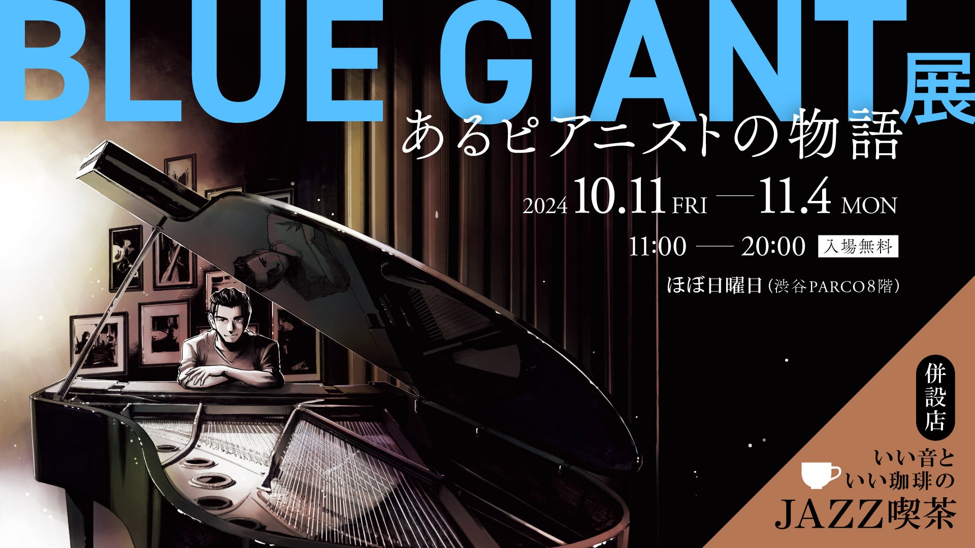 大人気JAZZ漫画『BLUE GIANT』に登場するピアニスト「沢辺 雪祈(サワベ ユキノリ)」。主人公ではないけれど、ずっと、記憶に残っているキャラクターのひとりです。株式会社ほぼ日が、渋谷PARCO8Fで運営する「ほぼ日曜日」では、そんな雪祈にスポットライトを当て、彼が登場する数々のシーンから選んだ「BLUE GIANTを語るうえでここは外せない」という場面を、20点を超える複製画を中心に展示します。雪祈が歩んできたストーリーを追体験するように、名場面の数々をご覧ください。会場には「JAZZ喫茶」もオープン。「いい音」と「いい珈琲」をご用意して、みなさまをお迎えいたします。