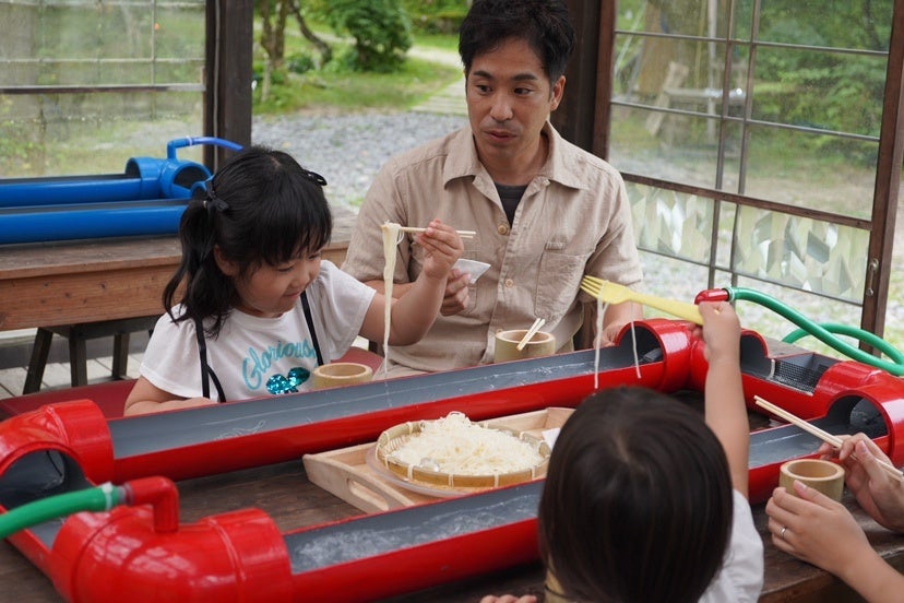今年の夏からは川遊びやキッズルームに加え、新たにスイカ割り、流しそうめん、花火バイキング