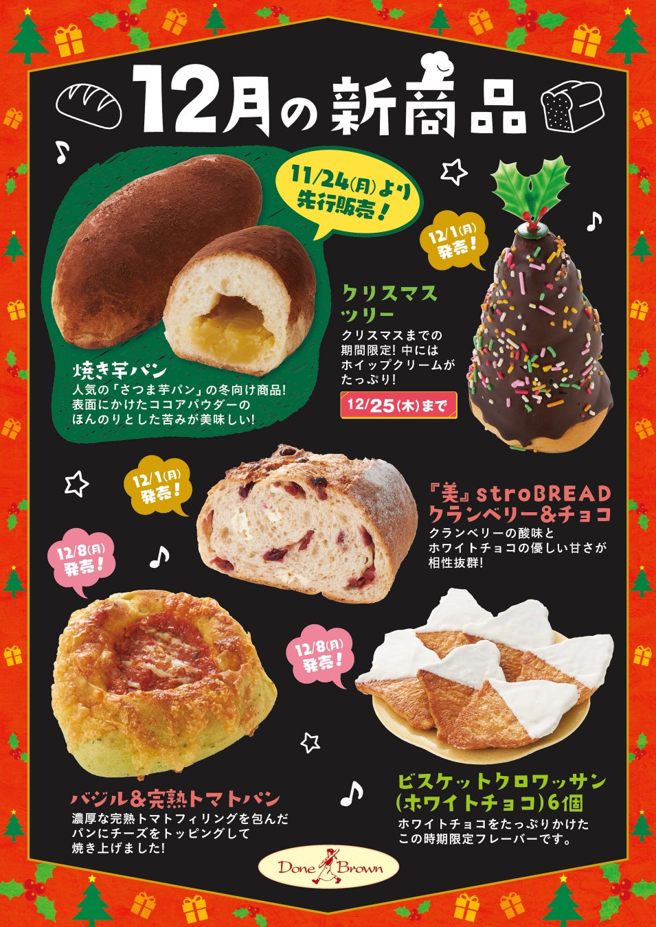 全粒粉入りの香ばしい生地に、ドライクランベリーとホワイトチョコをたっぷり巻き込み、しっとりと焼き上げました。クランベリーのやさしい酸味とホワイトチョコの甘みが口いっぱいに広がります。見た目にも華やかな赤と白でクリスマスにぴったりな商品です。