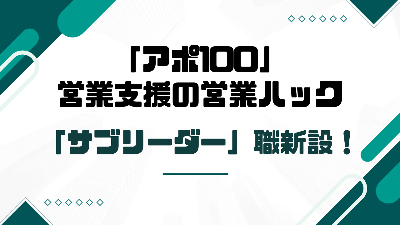 「アポ100」サービスで営業支援を行う営業ハックが役職「サブリーダー」を新設しました!