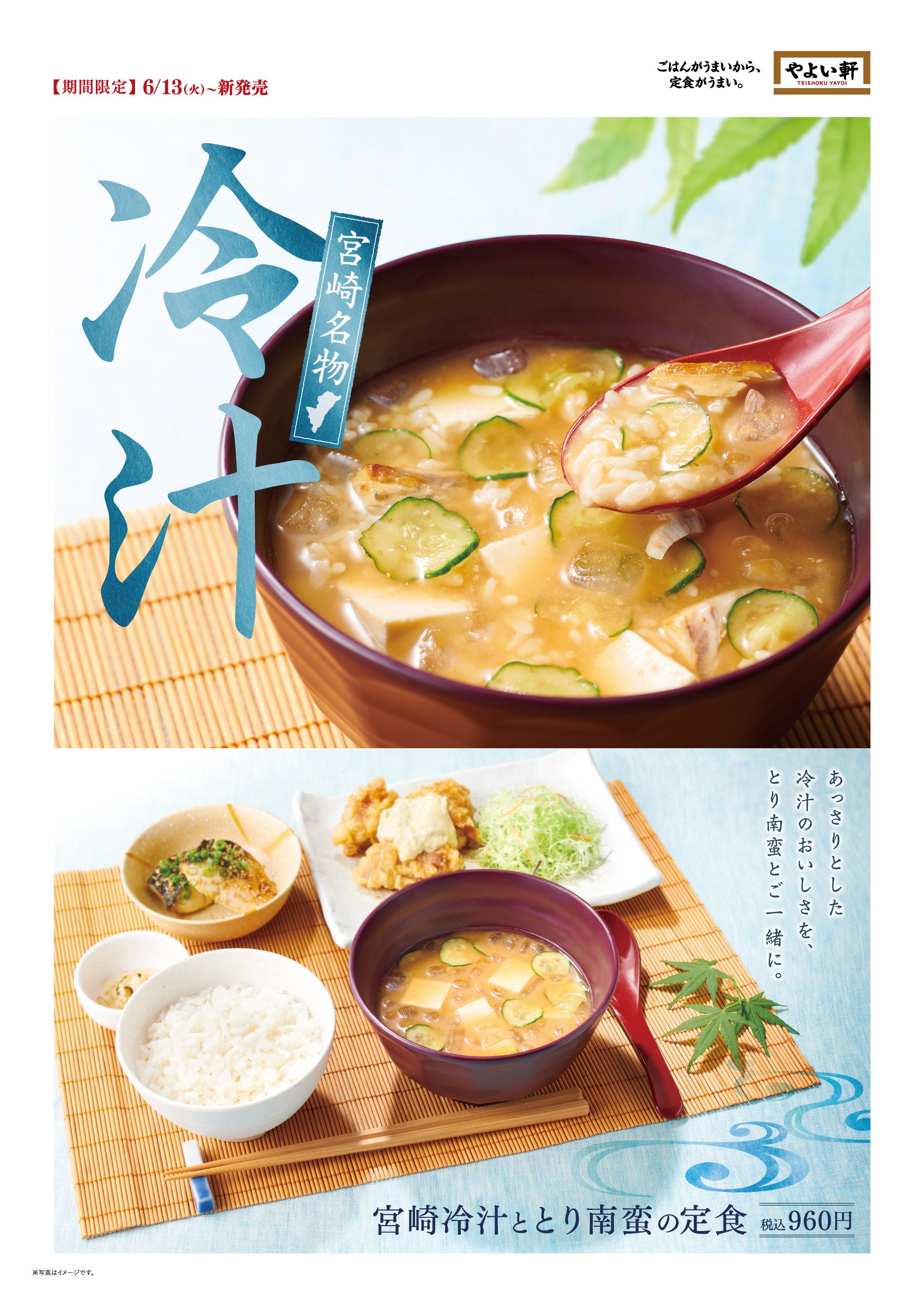 また、他の定食のみそ汁をプラス180円で冷汁に変更いただけるほか、単品でもご注文いただけます。ぜひ、「やよい軒」で宮崎メニューをお楽しみください。