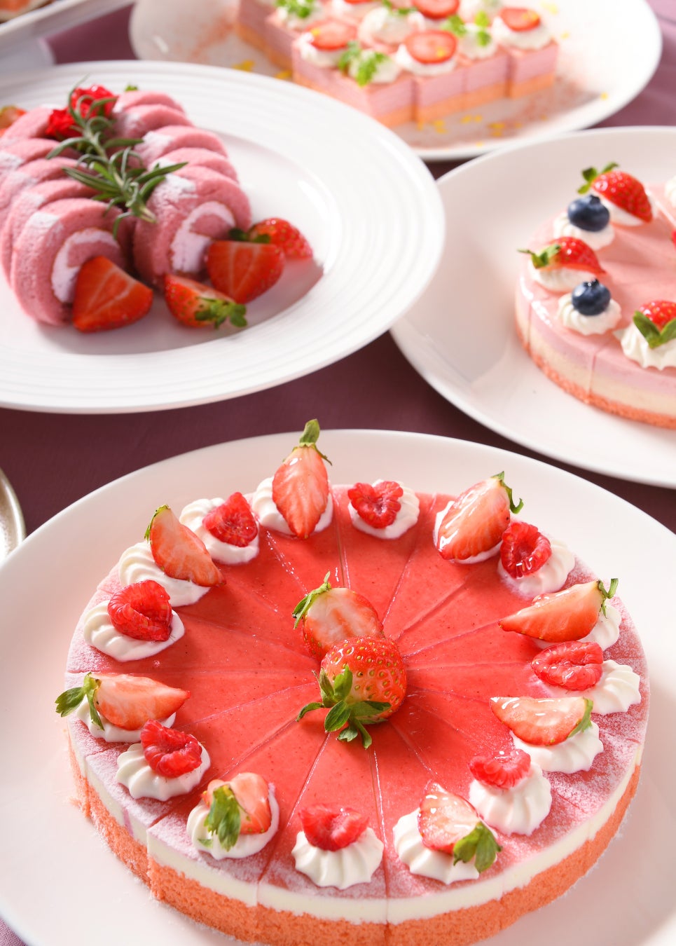いちごミルクレープ、いちごティラミス、とちおとめムースなど、写真に撮りたくなる“いちご尽くし”のスイーツが勢ぞろい。