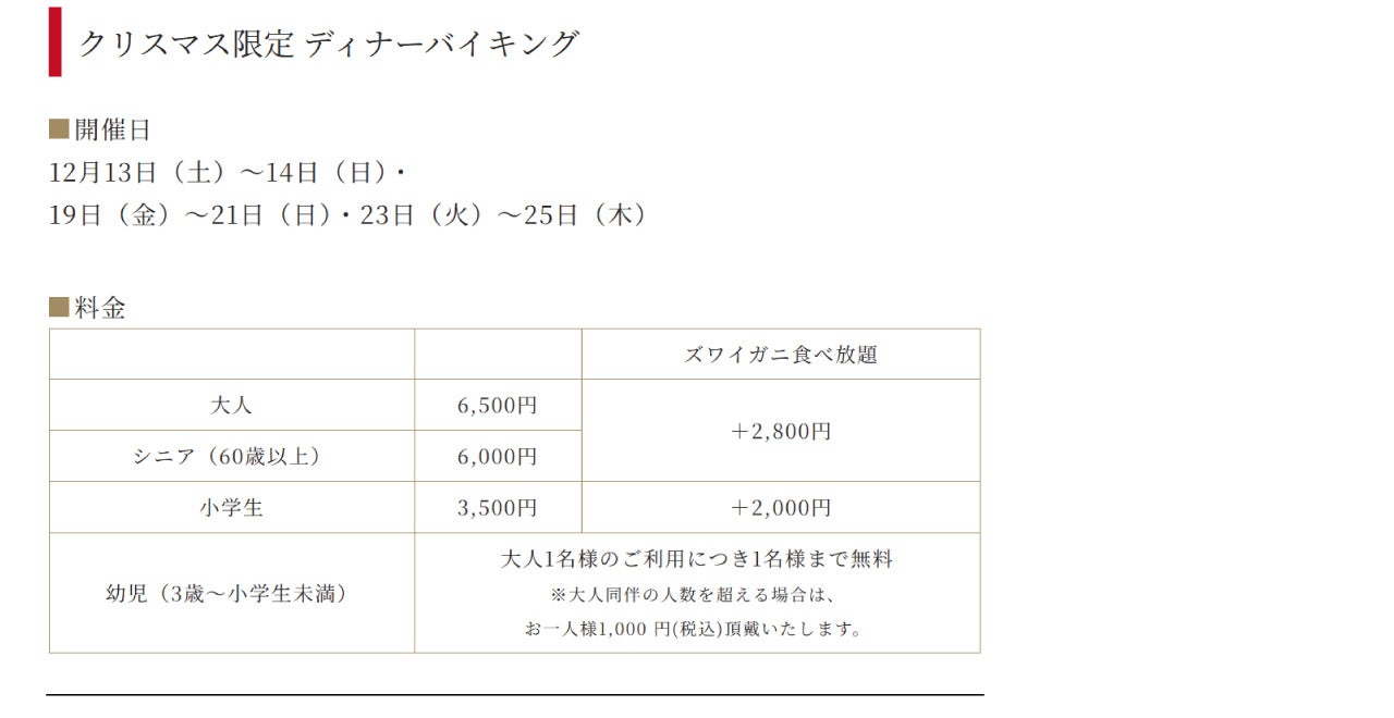 2025年12月13日(土)~25日(木)はクリスマス限定メニュー登場
