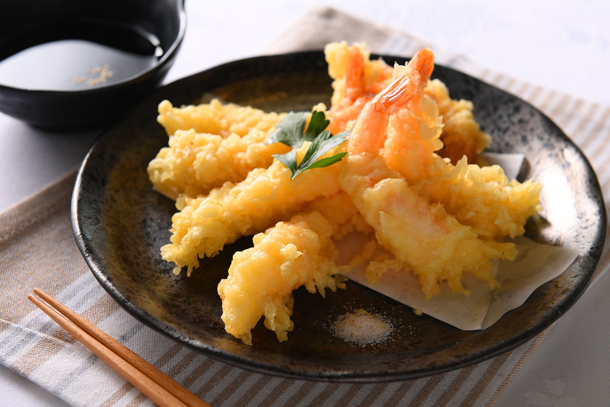 シェフが目の前で揚げる天ぷらは、湯気が食欲をそそる臨場感たっぷりの一品。