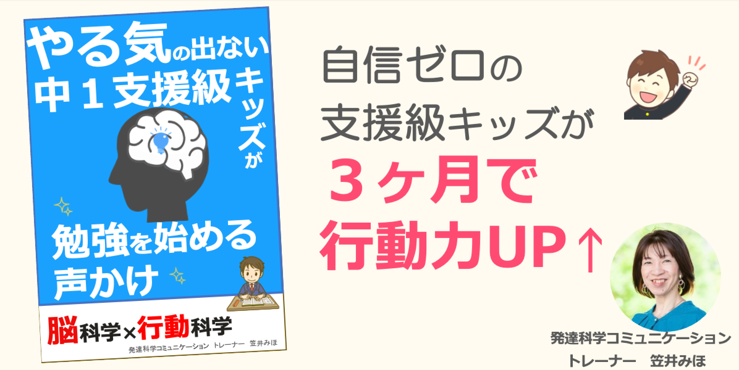はじめまして。発達科学コミュニケーショントレーナーの笠井みほです。コミュニケーションが苦手な思春期支援級キッズの育て直しの専門家として活動しています。この度は、脳を発達させるコミュニケーションで゙、中学校でつまずいて、自信をなくしてしまった子の、やる気を引き出す方法を お伝えする小冊子をリリースいたしました。