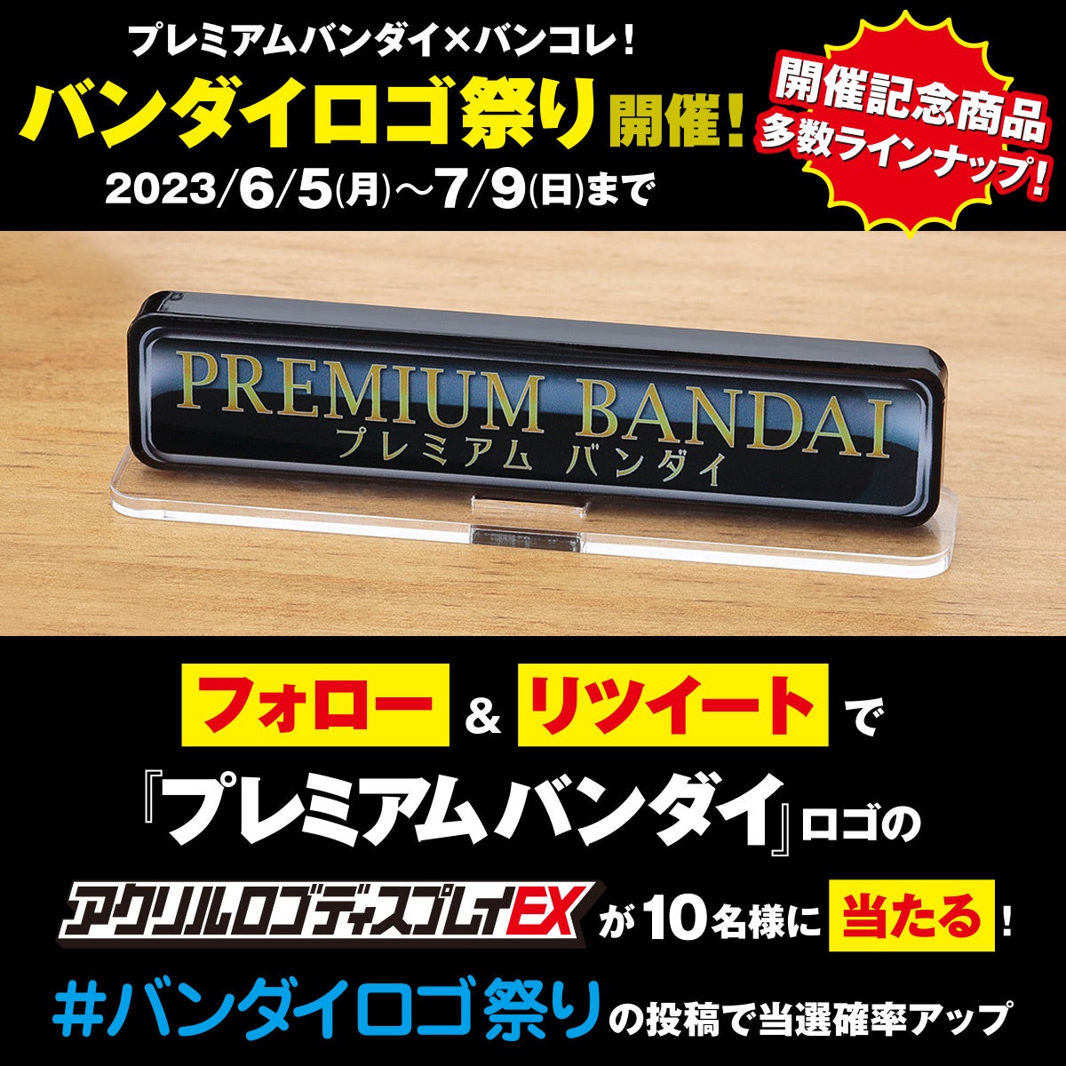 さらに、バンダイナムコグループ公式通販サイト『プレミアムバンダイ』のロゴがアクリルロゴディスプレイEXになった非売品の特別なアイテムが当たるTwitterキャンペーンをバンコレ!公式Twitterにて開催します。