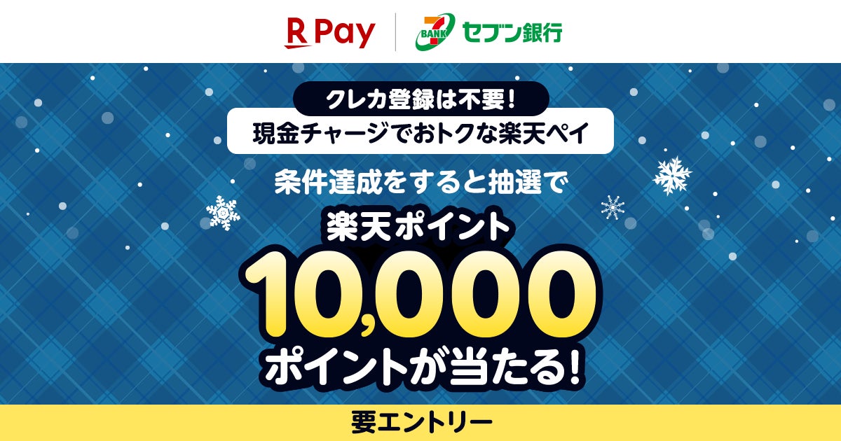 「楽天ペイ」、「セブン銀行ATMチャージで10,000ポイントが当たる!キャンペーン」を実施