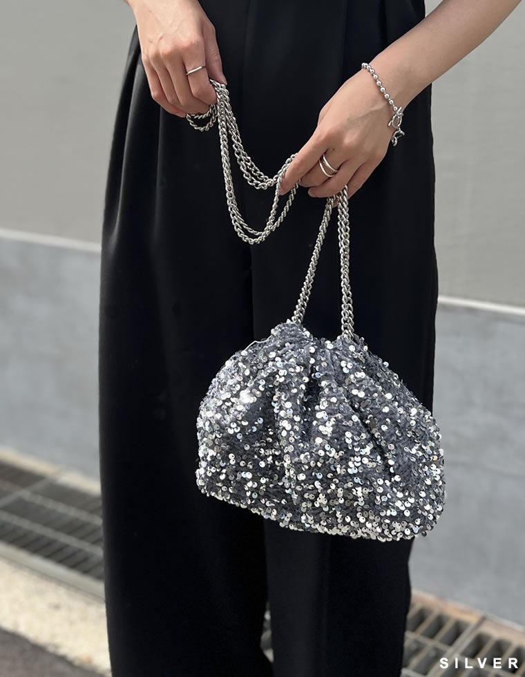 高級感漂うベロア素材にスパンコールが華やかに輝く、エレガントなチェーンバッグが登場。