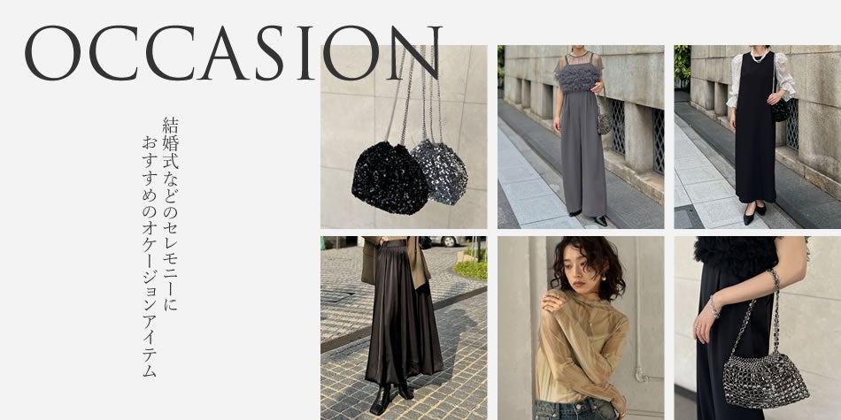 【Re:EDIT(リエディ)】オケージョンやセレモニーシーンに活躍するチュールオールインワンや、スパンコールバッグが新登場。