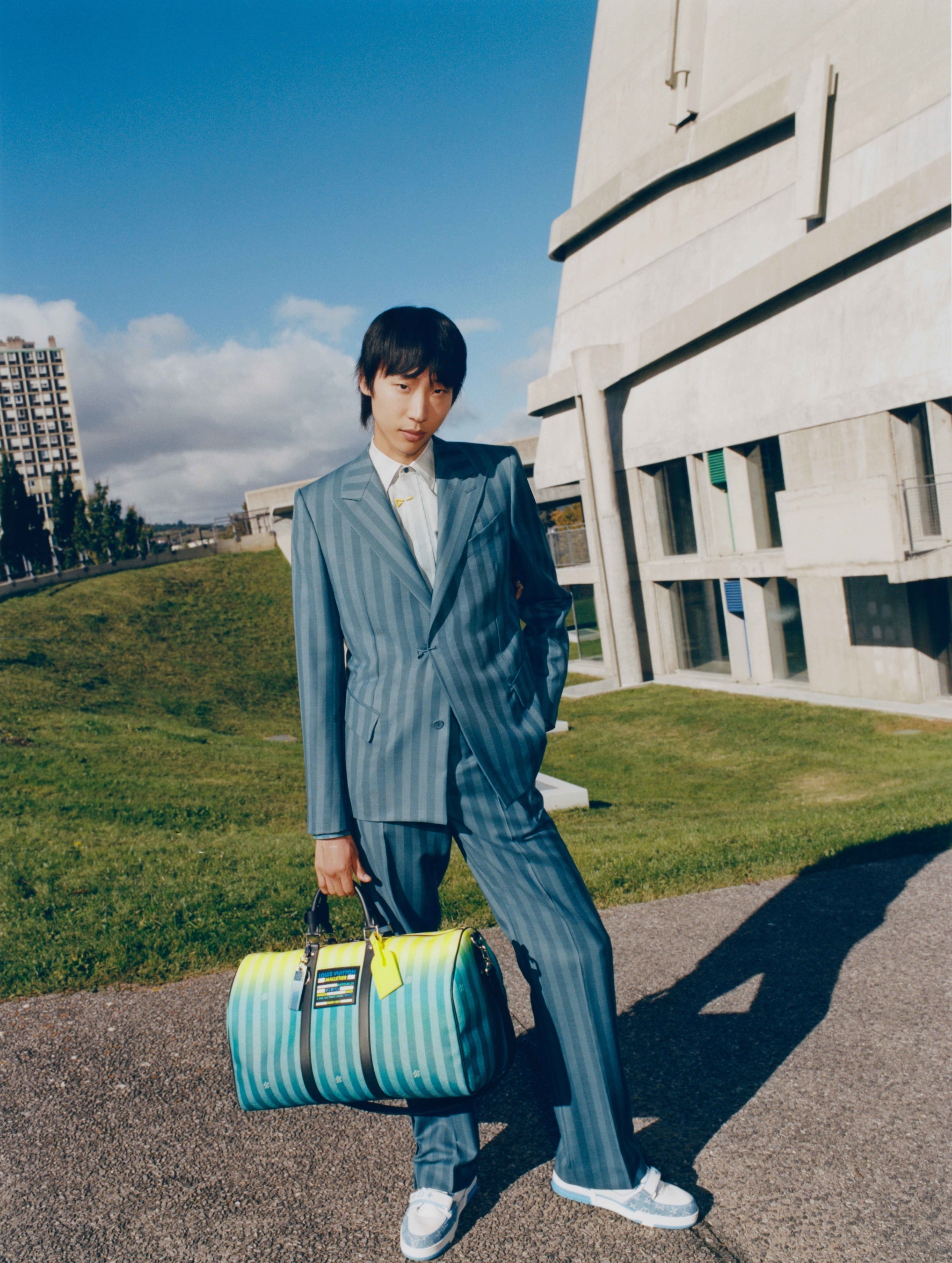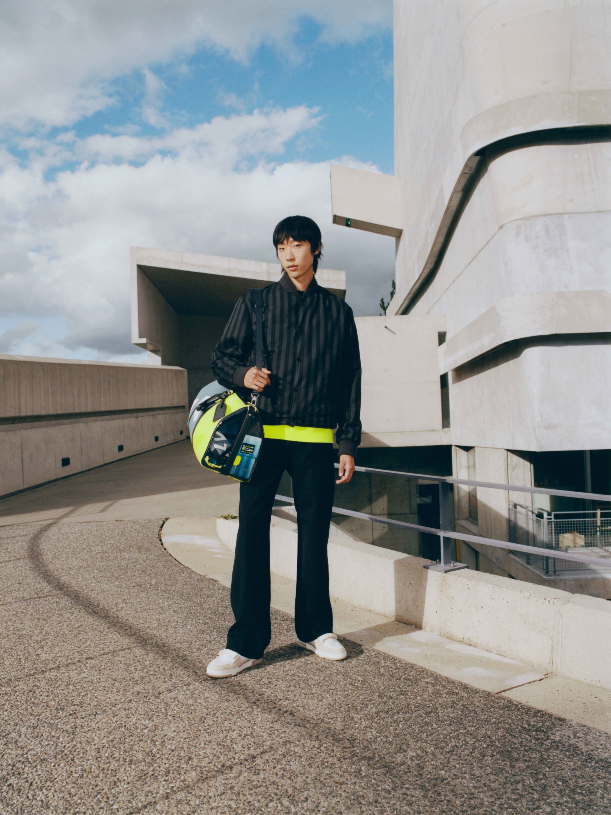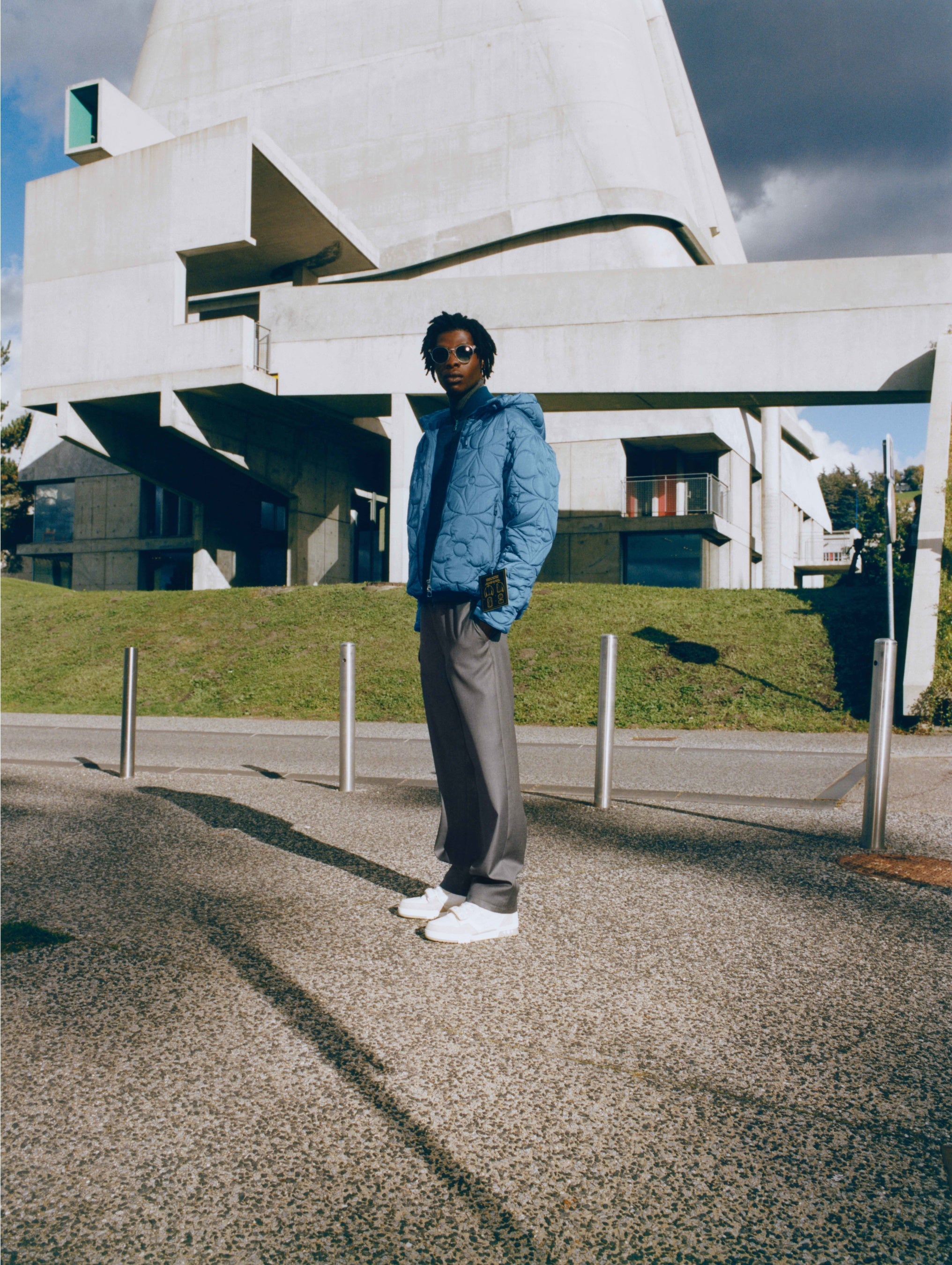 ビジュアルの撮影場所に選ばれたのは、近代建築の巨匠 ル・コルビュジェが設計したリヨンのフィルミニの建築群。写真を通して、ヴァージルと建築家のクリエイティヴィティが共鳴することで、スポーツウェアとワークウェアのコードが自由に一体化し、スーツという感覚が生まれます。
