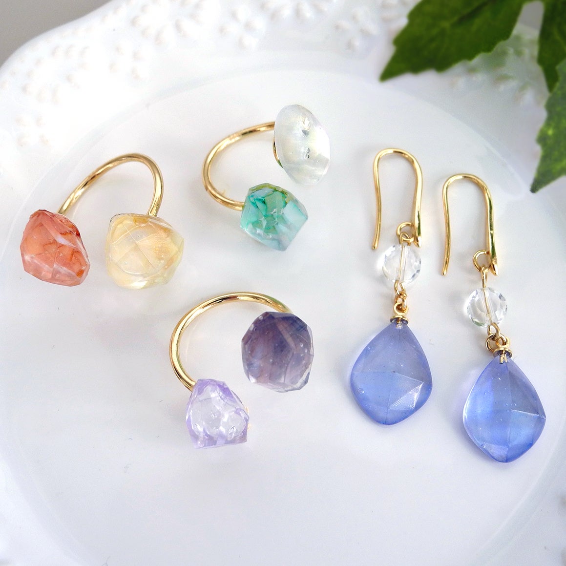 カット、大きさの違うカットビーズを使用する事で動くたび異なる輝きを楽しむことができます。