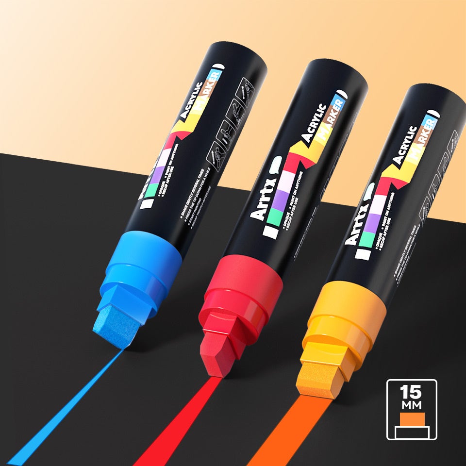 Arrtx 太芯ポスターマーカー 30色 15mm幅の先端アクリルマーカー