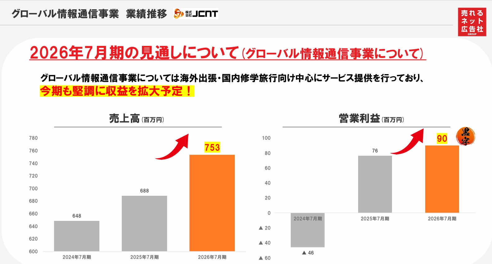 【売れるネット広告社グループ「JCNT」2026年7月期業績予想】