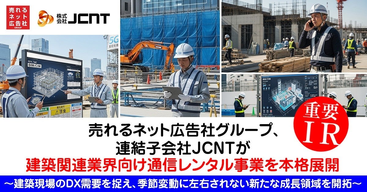 売れるネット広告社グループ、連結子会社JCNTが建築関連業界向け通信レンタル事業を本格展開~建築現場のDX需要を捉え、季節変動に左右されない新たな成長領域を開拓~