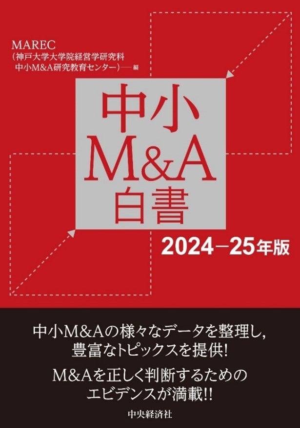 株式会社日本M&Aセンターホールディングス(以下、当社 / 本社:東京都千代田区 / 代表取締役社長:三宅 卓) と産学連携協定を締結する神戸大学大学院経営学研究科内の中小M&A研究教育センター(以下、MAREC / 所在地:兵庫県神戸市 / センター長:忽那 憲治)は、書籍『中小M&A白書(2024‐25年版)』を中央経済社より2024年9月13日(金)に発売いたしました。