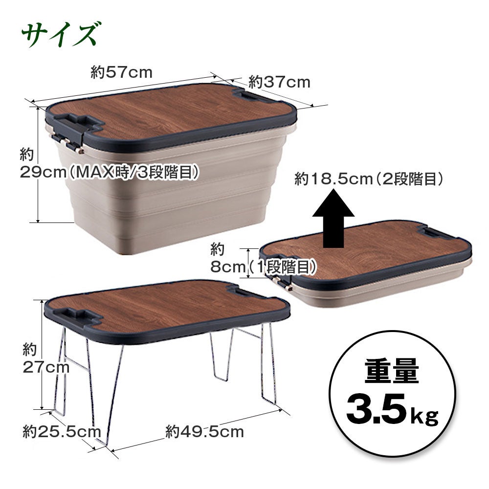 高さが85mm~290mmの3段階調整可能で、車中泊など限られた収納場所に沿った形状に変更できる。
