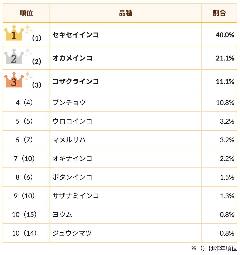 昨年同様「セキセイインコ」が1位を獲得しました。続いて2位に「オカメインコ」、3位に「コザクラインコ」となりトップ3は昨年同様の結果になりました。