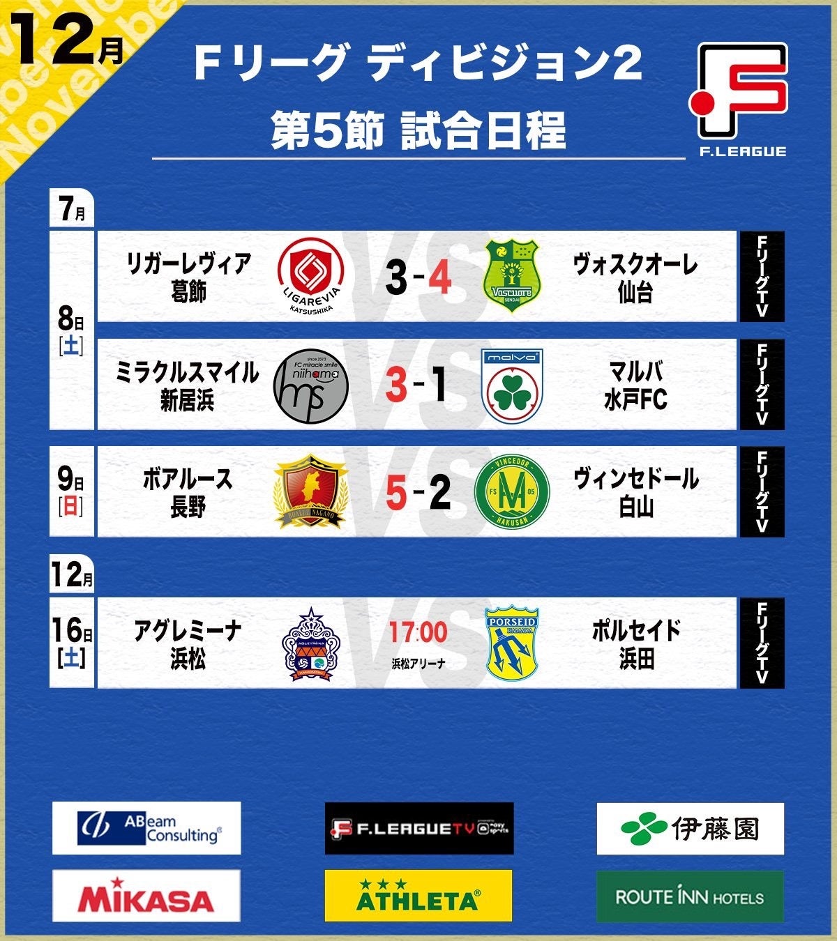 17:00 キックオフ アグレミーナ浜松 vs. ポルセイド浜田 ▶▶https://fleague.stores.play.jp/lives/b6246882-6748-4491-b453-0e7e06438536