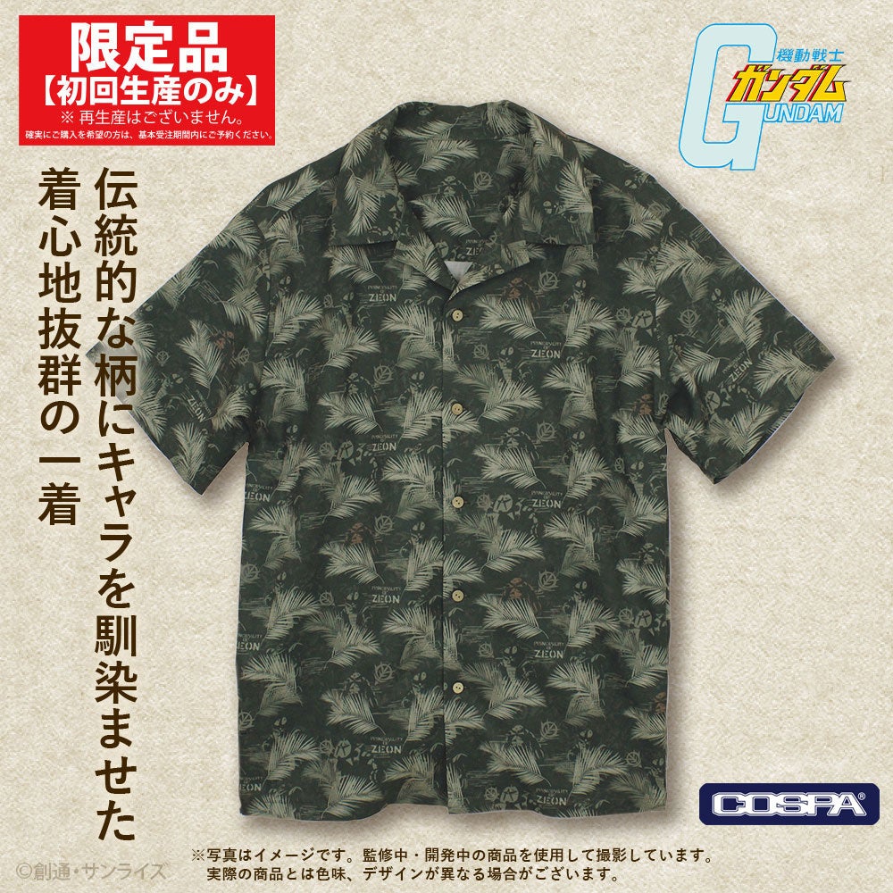 ジャブローの熱帯雨林で着たい!『機動戦士ガンダム』ジャブロー侵攻 アロハシャツが初回生産限定で登場。【株式会社コスパ】