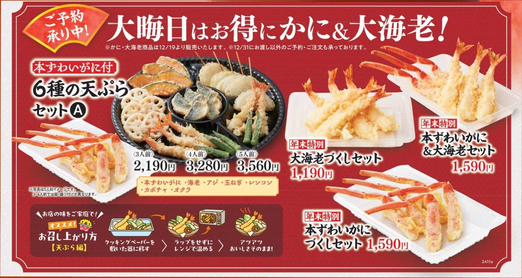 ■予約方法:天丼・天ぷら本舗 さん天各店舗の店頭または電話予約受付 11月7日~12月30日