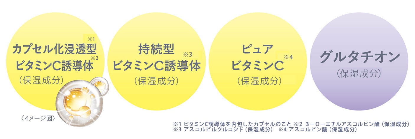 保湿成分カプセル化浸透型※1ビタミンC誘導体※2×保湿成分グルタチオン配合!毎日の集中ケアできめの整ったクリアな素肌へ