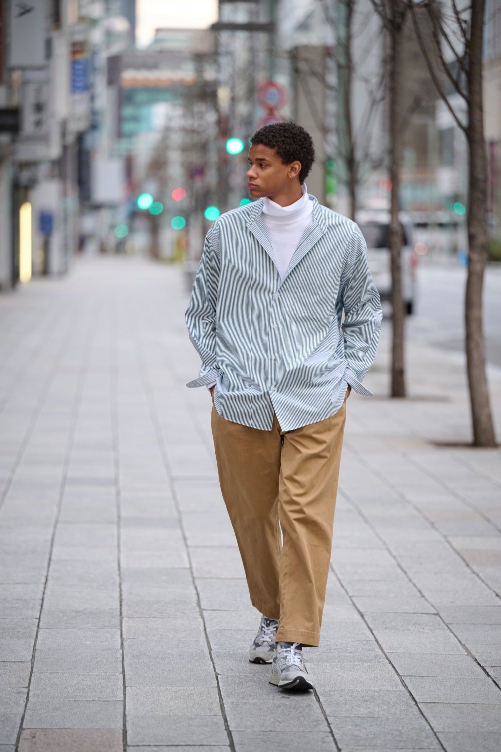 〈5525gallery〉が監修する「Firsthand」限定のカプセルコレクション〈SHIRT FIRSTHAND by 5525gallery〉。2024年春夏の新作コレクションが登場しました。定番のレギュラーカラーシャツ、スタンドカラーシャツに新色や新しいストライプ柄がラインアップ。レギュラーカラーシャツは定番の4色に加え3色が新色で登場し全7色展開、スタンドカラーシャツは定番3色に加え1色が新しく加わり全4色展開となります。また、ビジュアルは23年秋冬から継続でフォトグラファー〈荒井 俊哉(あらい しゅんや)〉氏が撮影、スタイリスト〈坂上 真一(さかがみ しんいち)〉氏がスタイリングを手掛け、クリーンで洗練された世界観を表現しました。スタンドカラーをあえて着崩し薄手のタートルニットをレイヤードしたスタイルは〈SHIRT FIRSTHAND by 5525gallery〉の定番、かつ一押しのスタイリングです。