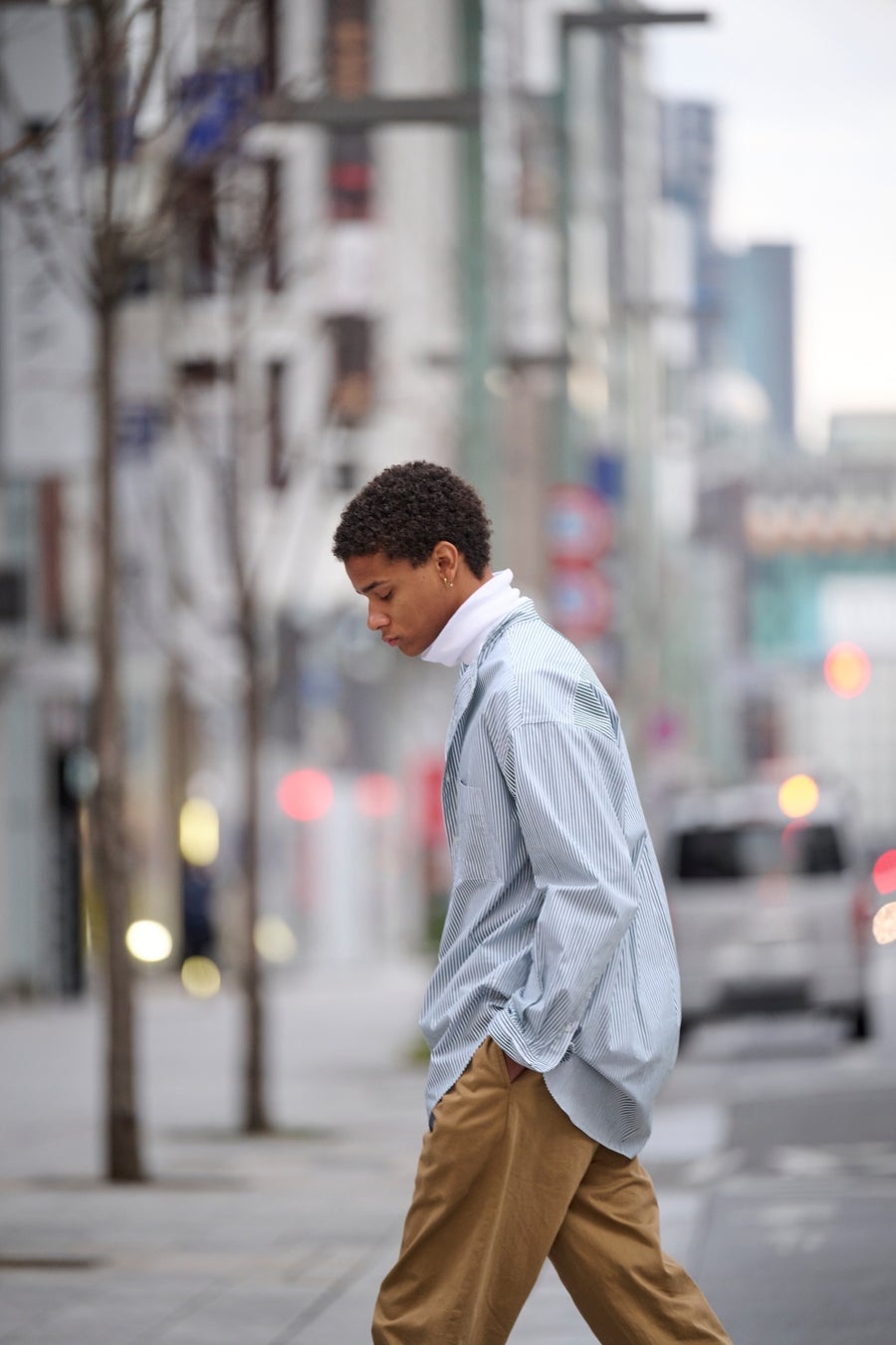 ユニセックスで着用が可能なのも〈SHIRT FIRSTHAND by 5525gallery〉の魅力です。美シルエットなので、オーバーサイズにさらっと羽織って洒落感を醸し出せます。今季はスポーティーモードなスタイリングがFirsthandおすすめの組み合わせです。