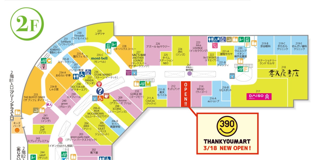 エルソニック株式会社(本社:大阪府吹田市)は、全国で104店舗を展開する390円ショップ『サンキューマート』を関西2店舗同時オープンいたします。2022年3月17日(木)にあべのキューズモール内『SHIBUYA109阿倍野店』、2022年3月18日(金)に神戸三田プレミアムアウトレット直結の『イオンモール神戸北店』がオープンします。