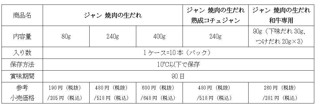 【ジャン 焼肉の生だれ ラインアップ】