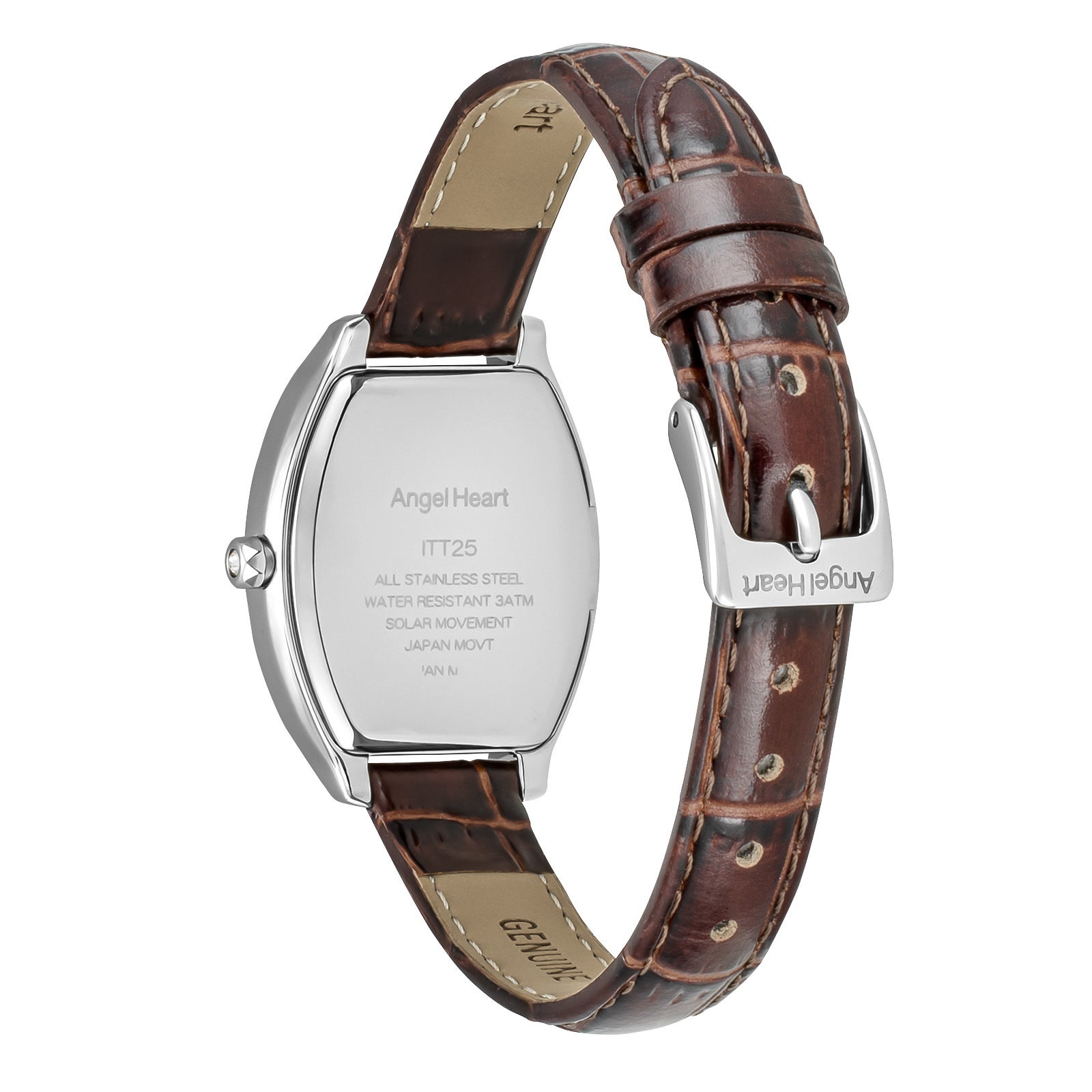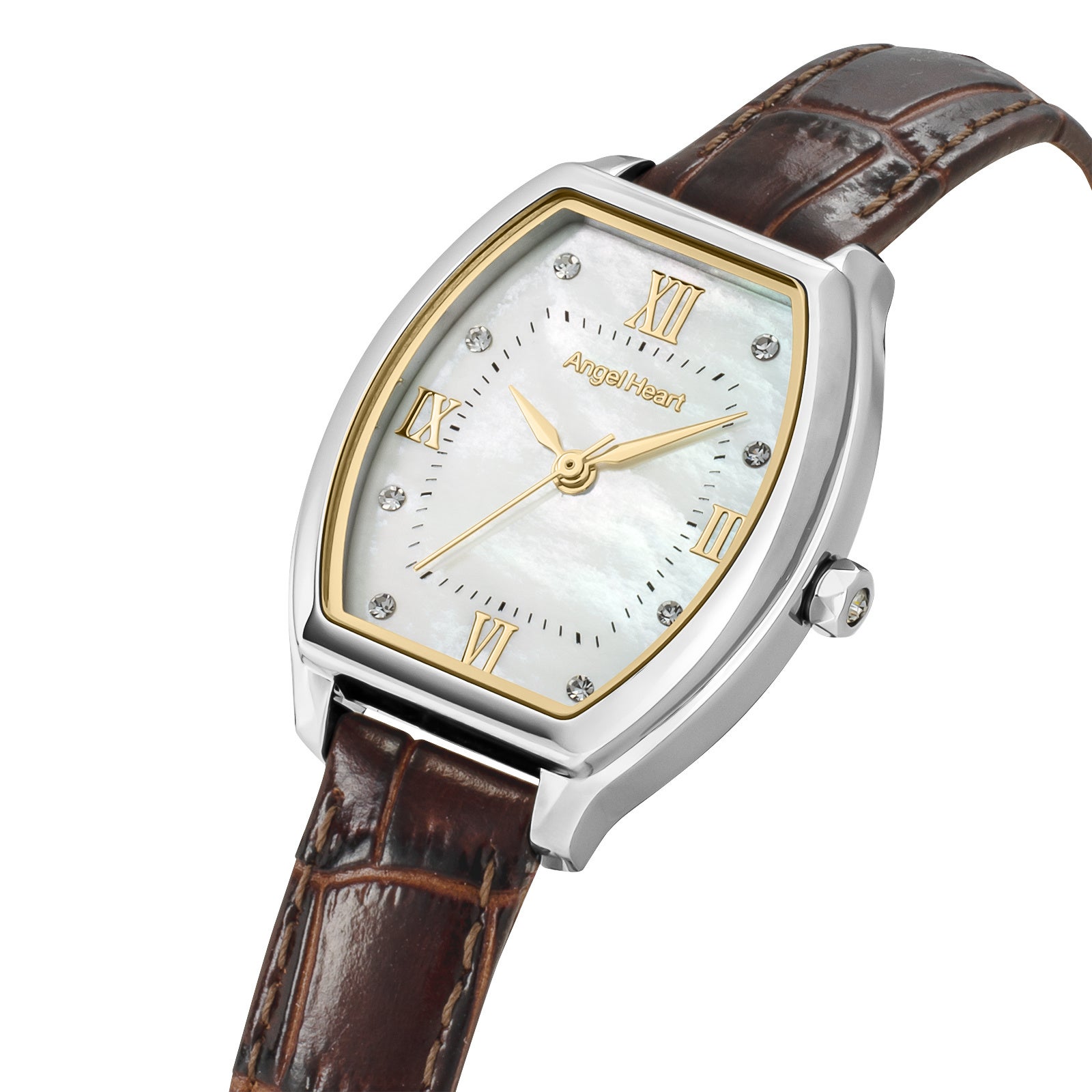 エントリーライン初のトノー型ウォッチが登場。 定番の3色展開に加え、クラシックなレザーバンドが新鮮なTiCTAC限定モデルも展開。 シンプルなホワイトにローマ数字をあしらったタイムレスなデザインに、8石のクリスタルを施し、エンジェルハートらしい可愛さをプラス。 ほのかな光沢感が魅力のブラウンレザーベルトは、カジュアルにもフォーマルにも合わせやすく、毎日のコーディネートに活躍します。 60メモリ付きで視認性にも優れています。
