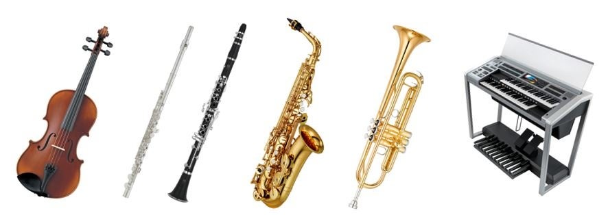 体験できる楽器:バイオリン、フルート、クラリネット、サックス、トランペット、エレクトーン(予定)
