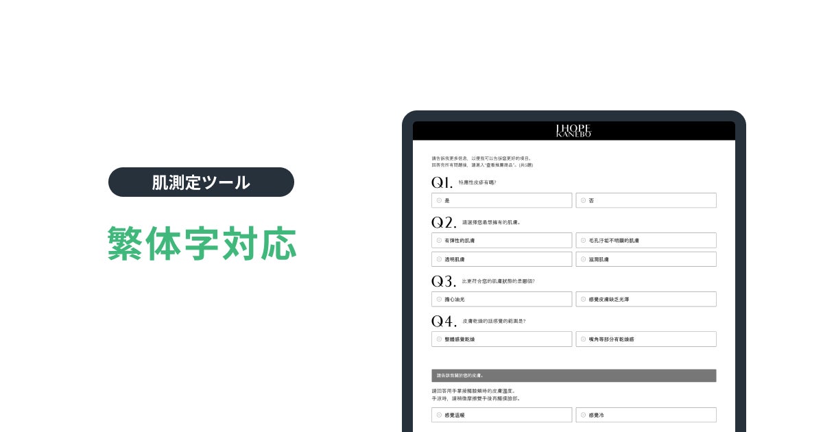 KANEBO 肌測定ツールを日本語から繁体字に対応しています。