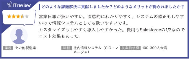 今回の「ITreview Grid Award 2025 Spring」は2025年3月までに掲載されたレビューの集計結果をもとに選定されています。「GENIEE SFA/CRM」を活用した営業進捗の可視化による社内での情報共有や会議の質の改善に関する高評価のコメントが多く寄せられました。