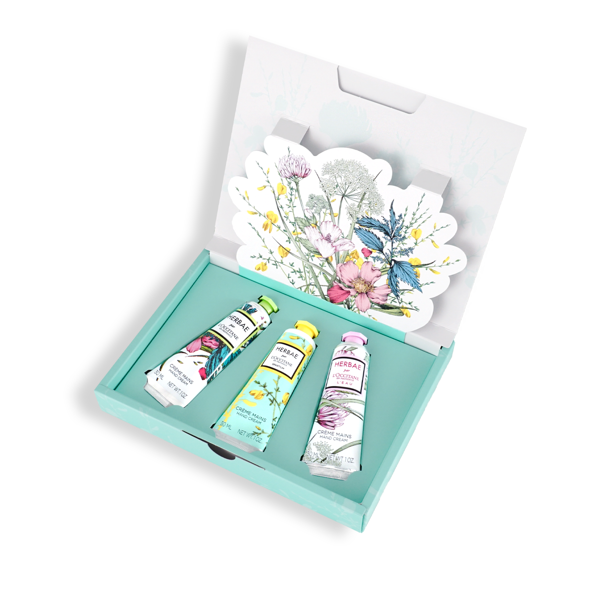 最後にご紹介するのは、プロヴァンスを代表する3つのハーブの香りのハンドクリームが入った「エルバ ハンドトリオ」。明るく華やかなフローラルブーケの限定の香り「エルバガーデン」、清々しいハーバルグリーンシトラスの香り「エルバヴェール」、甘く爽やかなシトラスグリーンフローラルの香り「エルバブランシュ」。全3種のエルバシリーズの香りを贅沢にコンプリートしたハンドキットは、その日の気分に合わせて香りをお楽しみいただけます。さらにパッケージは、ボックスを開けると色とりどりの花々のブーケが飛び出す仕掛けが。手肌も心もうるおう幸せなギフトです。
