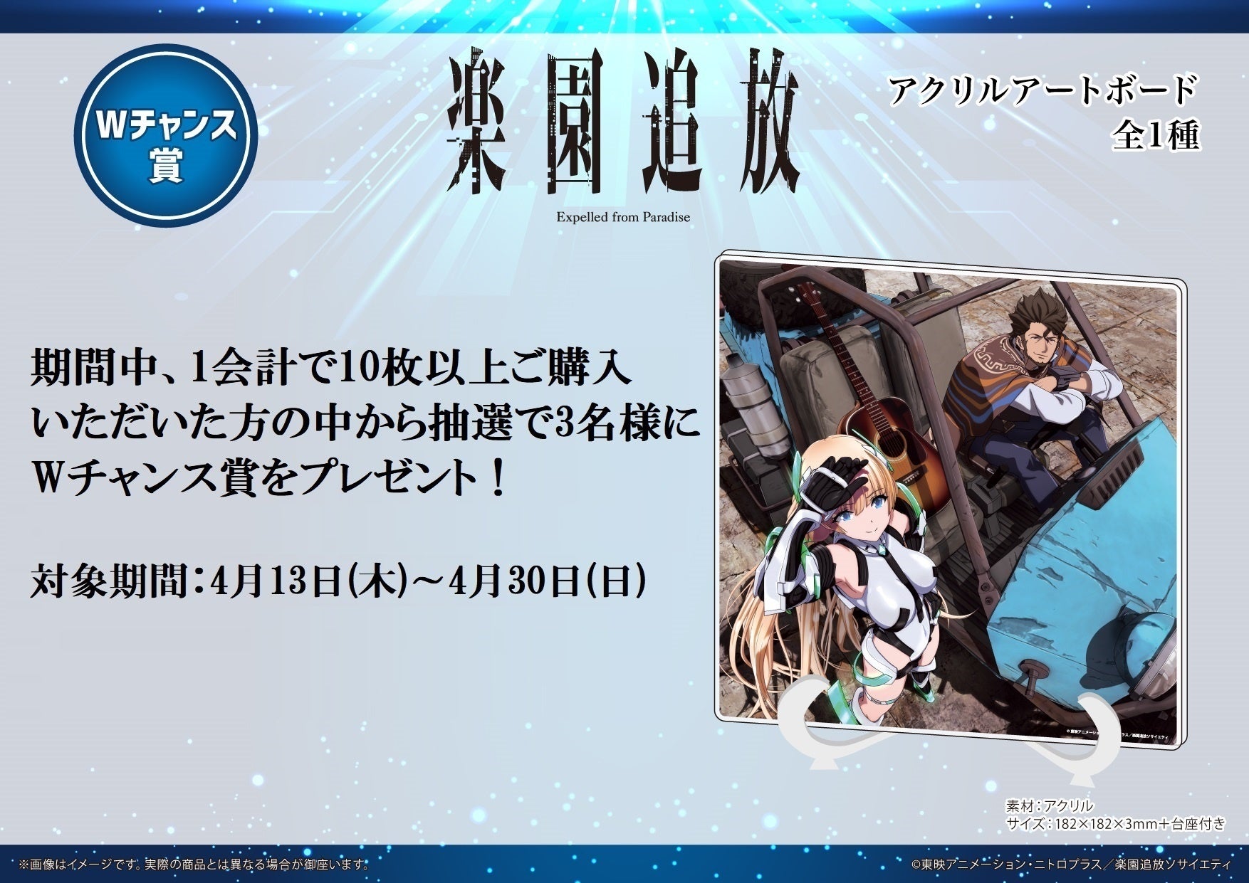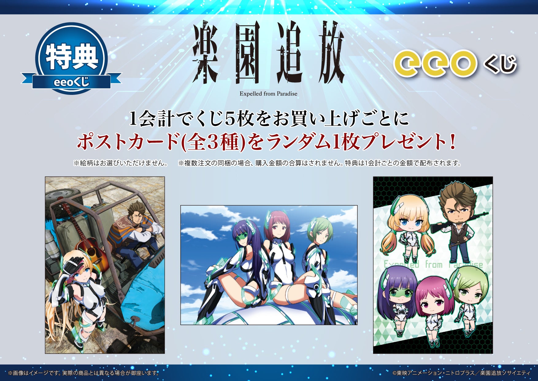 株式会社A3は、アニメ映画『楽園追放 -Expelled from Paradise-』のオンラインくじ「eeoくじ」を販売中です。