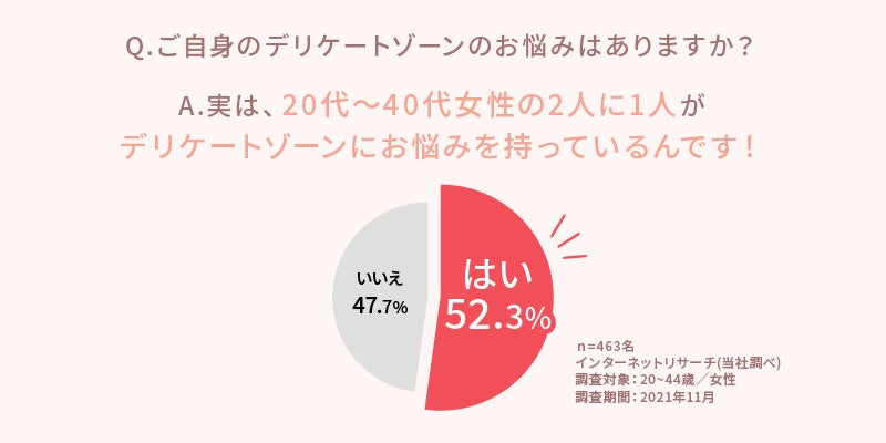 フェミニンフローラとは、女性のデリケートゾーンの常在菌のこと。アンファーが行った調査では、20代~40代女性の半数以上がデリケートゾーンにおけるかゆみ・におい等の日常的な悩みを抱えています。しかし、これらの悩みのほとんどはデリケートゾーンのフェミニンフローラバランスが関係しています。
