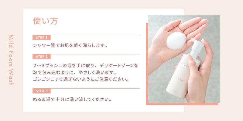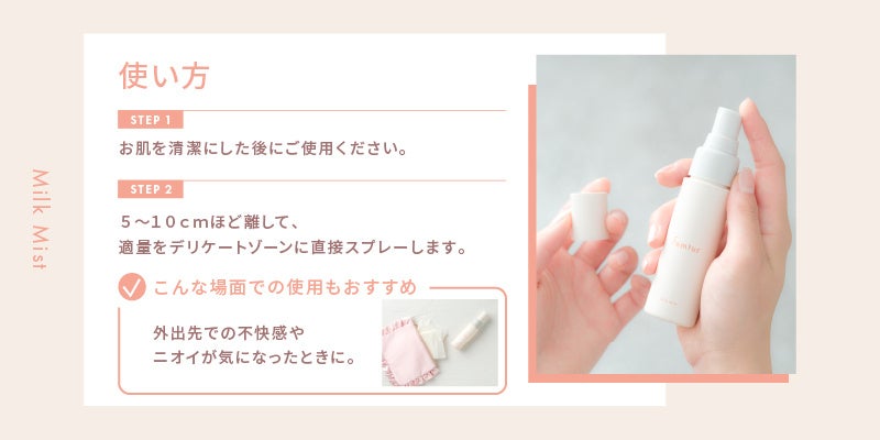 お風呂上がりのデリケートゾーンをしっかり保湿することで、ゆらぎがちなデリケートゾーンの肌のコンディションを整え、乾燥や摩擦等で起こりやすいデリケートゾーンの気になる悩みを防ぎます。