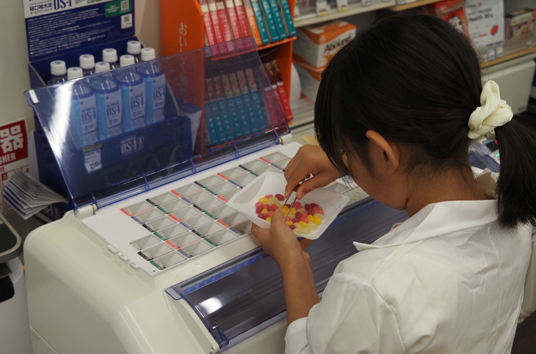 これまで、大阪、東京、茨城の薬局などで薬剤師の仕事体験イベントを計5回以上開催し、多くのきょうだい児とそのご家族が参加しました。参加者は白衣を着用し、普段は立ち入れない調剤室を見学するほかお菓子を薬に見立て、本物の軟膏板や錠剤分包機を使用した混合や粉砕、一包化など、薬剤師の仕事をリアルに体験します。また、2025年5月からは本活動に共感した医師(柿木 賢太郎氏)と連携して、きょうだい児が医師役となり、聴診器等で家族を診察して処方箋を発行し、それをもとに「診察から服薬指導まで」の一連の流れを体験するプログラムへと発展しています。