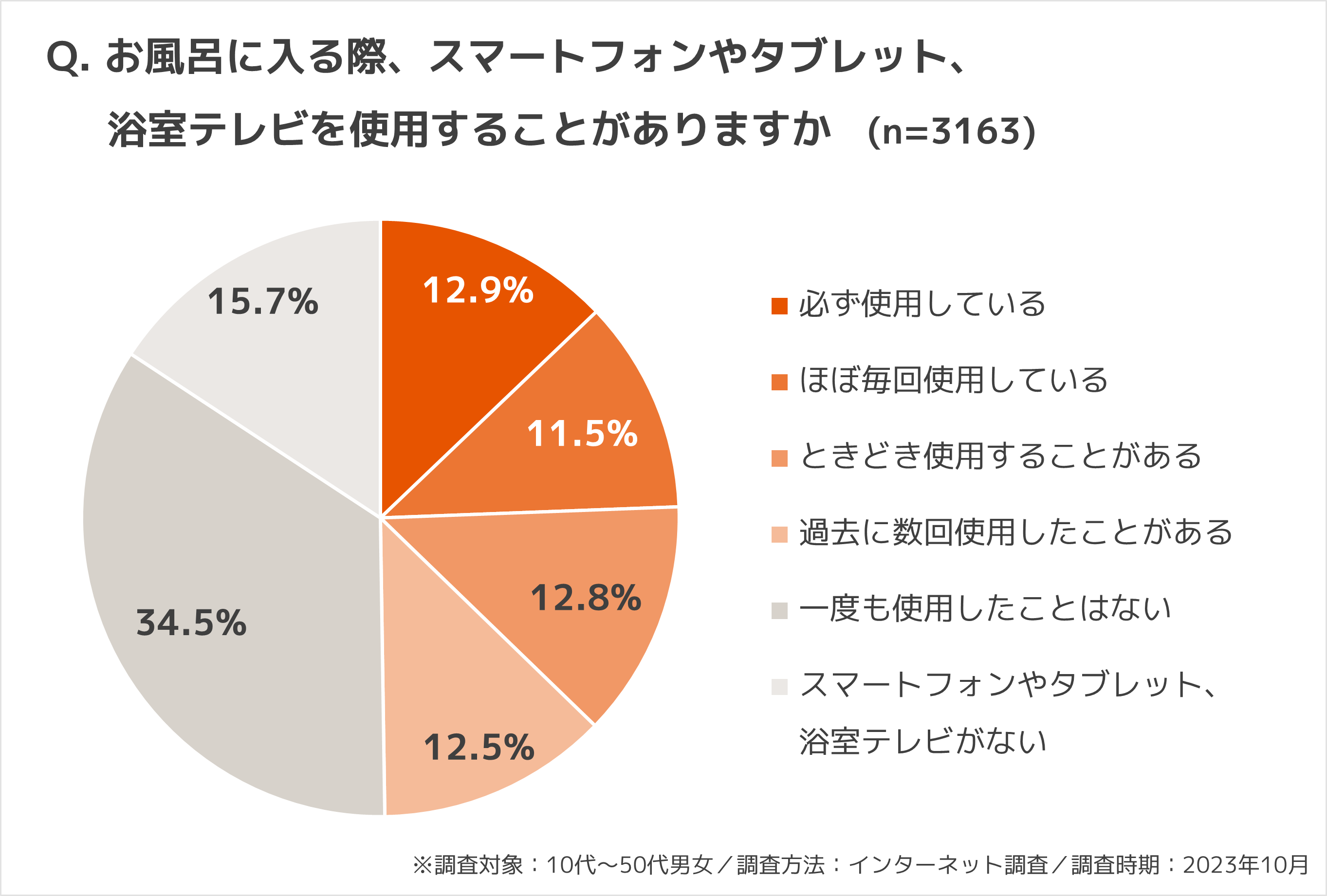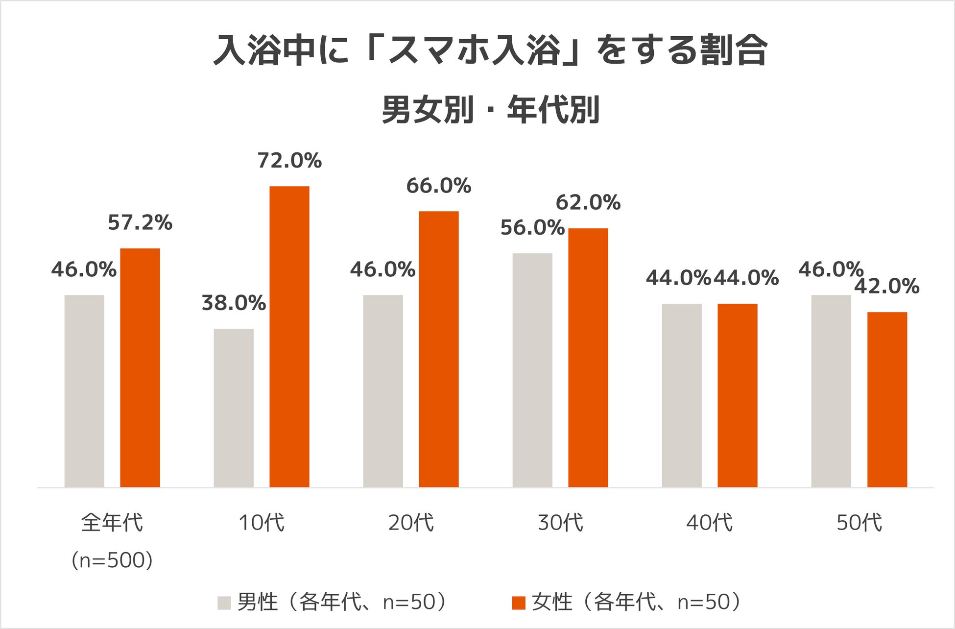 <本調査>入浴時にスマートフォンなどの使用経験が過去1回以上ある10代~50代男女、500人