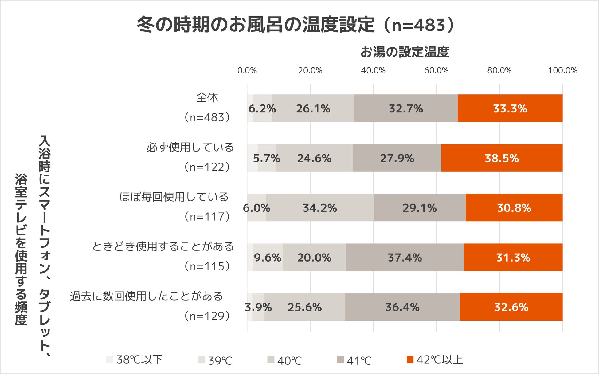 ・冬のお風呂、毎回「スマホ入浴」をする人は42℃以上の熱めの湯温にする人が最多