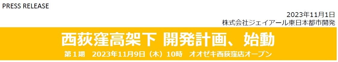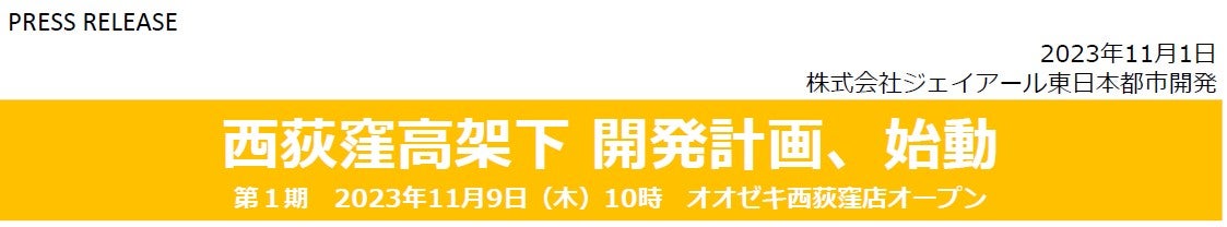 西荻窪高架下 開発計画始動、第1期 2023年11月9日(木)10時 オオゼキ西荻窪店オープン
