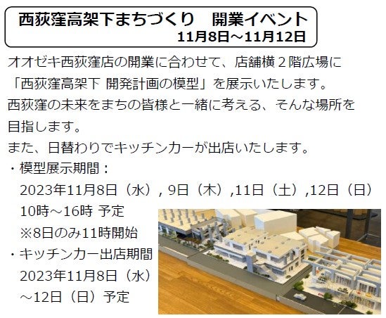 オオゼキ西荻窪店の開業に合わせて、店舗横2階広場に「西荻窪高架下 開発計画の模型」を展示いたします。