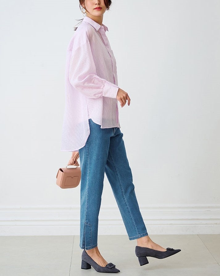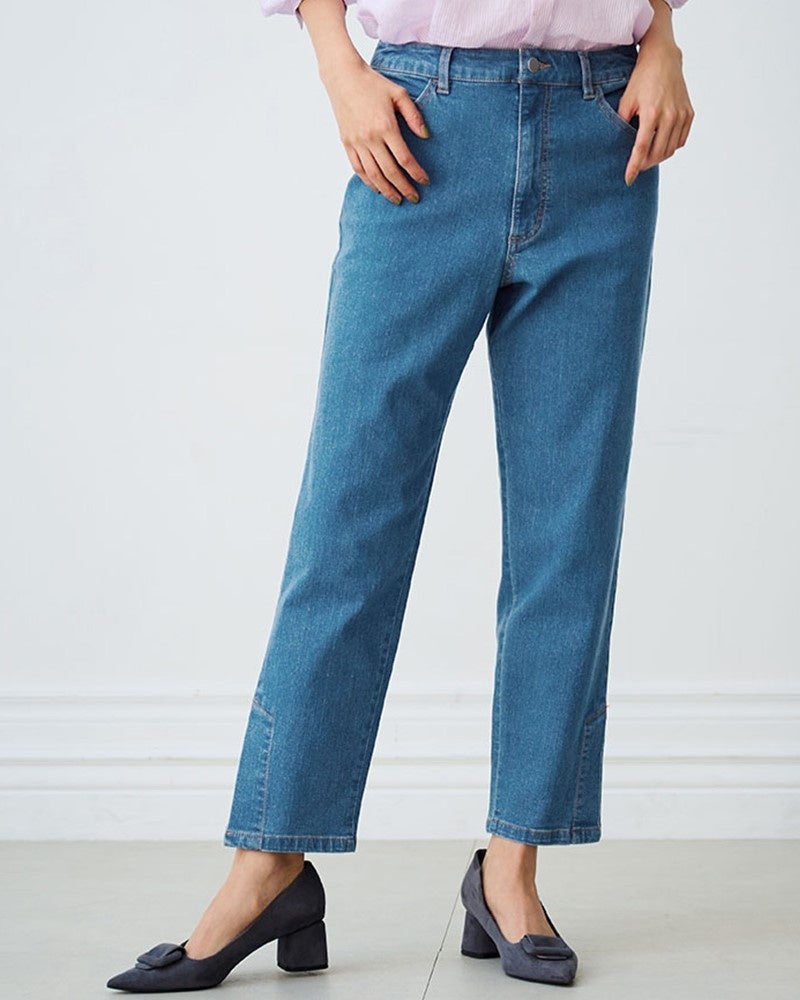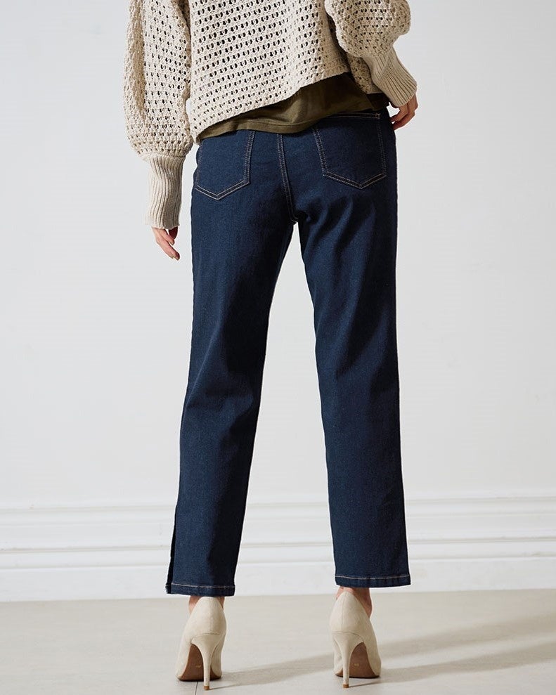 【サスティナブル】サイドスリット入りストレートデニムパンツ