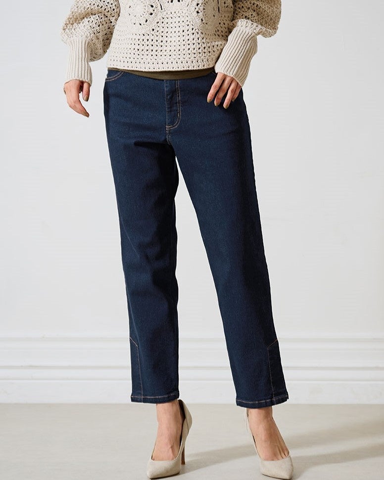 ■特長:原材料にリサイクルポリエステルを使用したエコデニム。ストレッチが効いていてはき心地が良いところもうれしいポイント。デイリーファッションに欠かせないデニムを地球にやさしい素材でアップデートします。