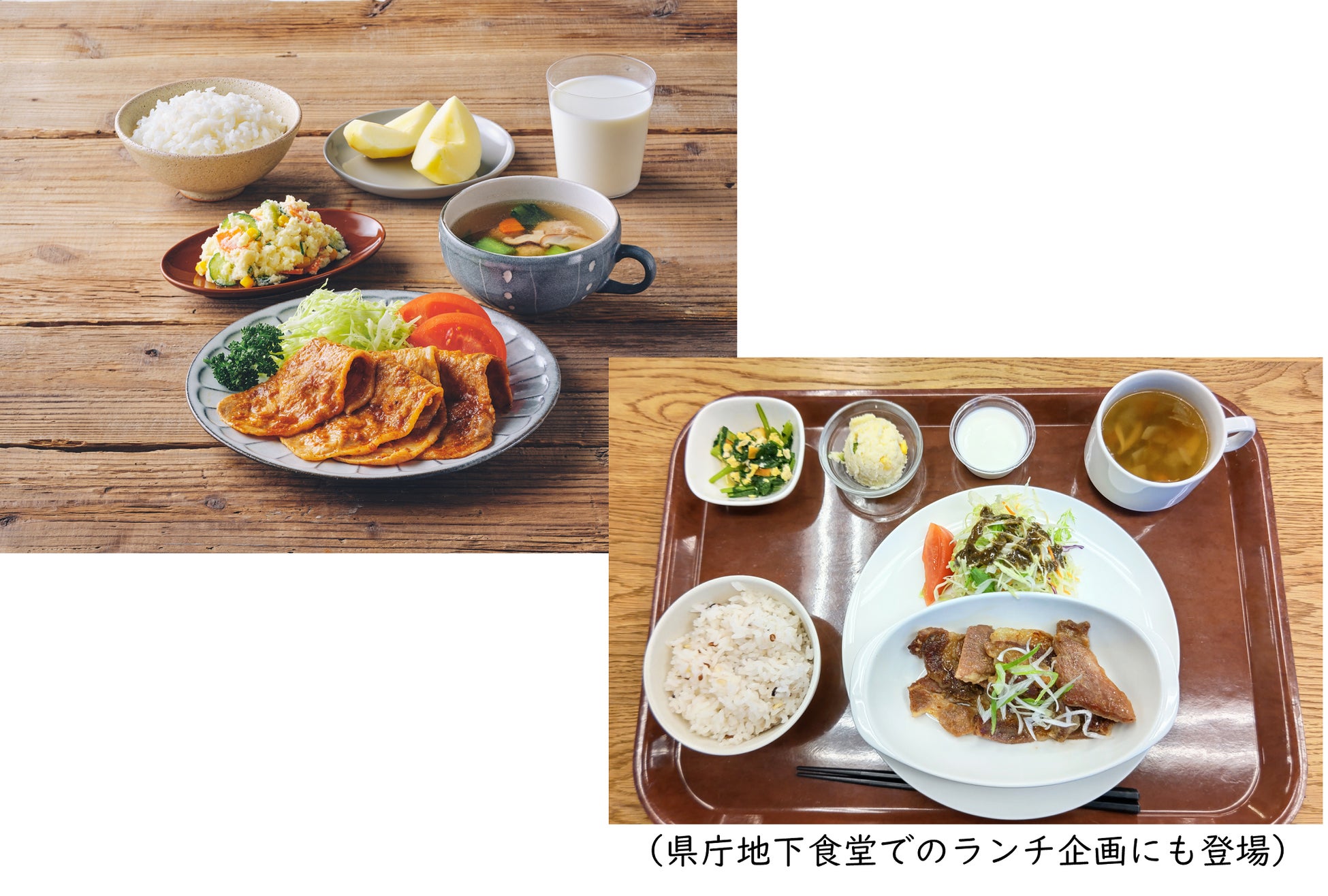 アスリートを支える食を佐賀の自慢の食材(お米、玉ねぎ、レンコン、豚肉、佐賀海苔)で作りました。