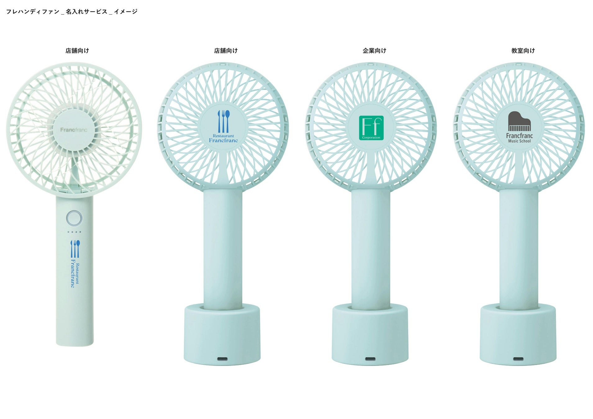 (フランフラン)』は、Francfrancオンラインショップ特設ページにて、「フレ ハンディファン※2」にロゴや企業名などの印字ができるサービスを2025年3月27日(木)よりスタートします。