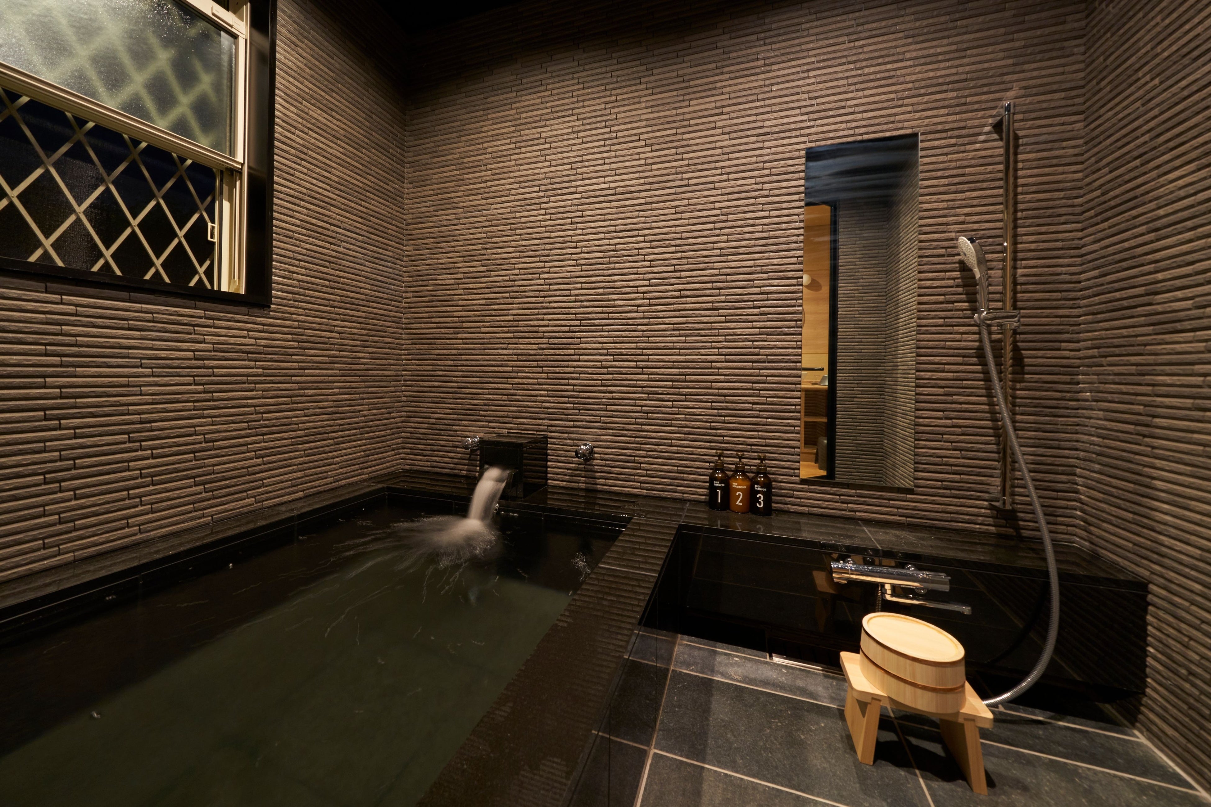 ■温泉 24時間楽しめるプライベート温泉完備(地下1,200mから湧き出す天然温泉)