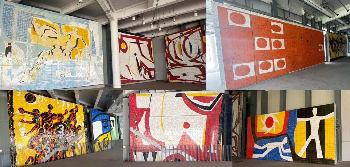 旧国立競技場のバックスタンドや正面玄関などにあったモザイク壁画です。