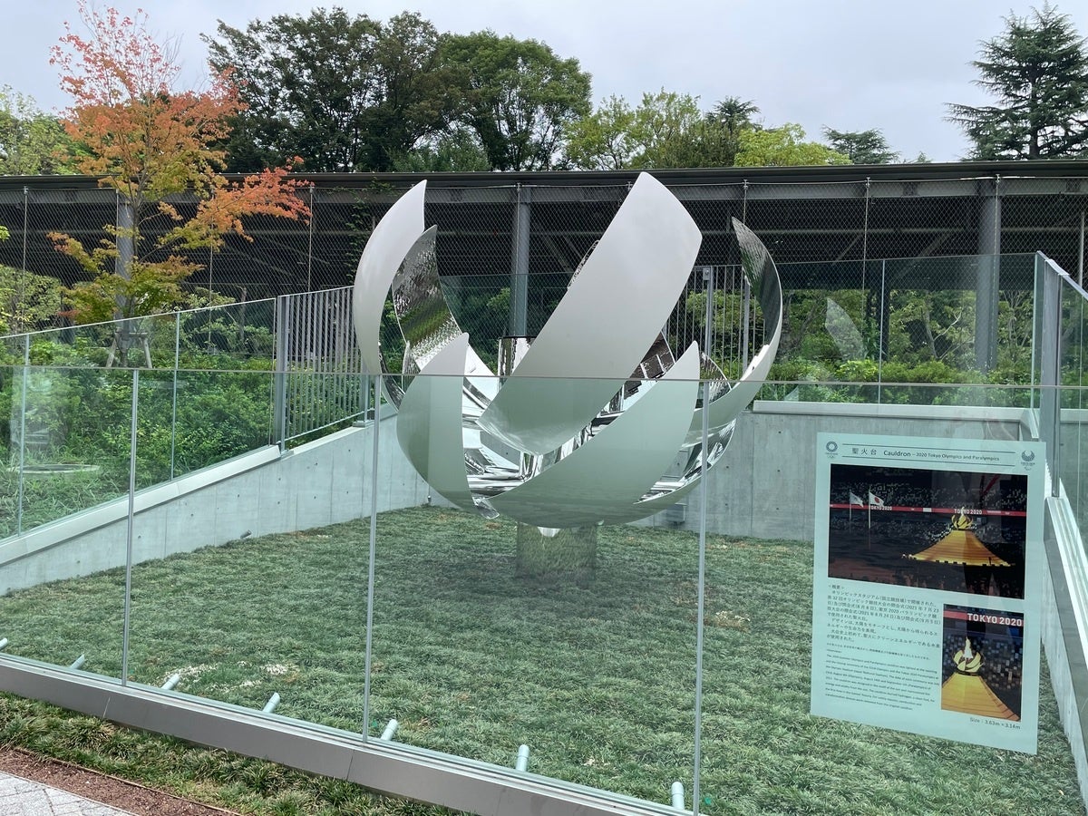 東京2020オリンピック・パラリンピックのレガシーとして設置。日本のものづくりが結集し、最後は職人の手仕事によって仕上げられた唯一無二の聖火台。大会史上初めて水素が燃料として使用されました。(国立競技場ホームページより。)