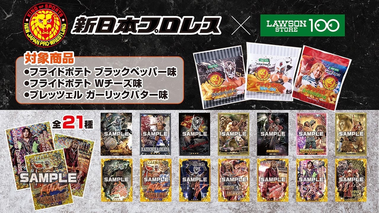 株式会社ローソンストア100(神奈川県川崎市)が運営する「ローソンストア100」(659店舗/2023年5月末現在)では、「新日本プロレス」とのコラボレーションを決定。2023年7月19日(水)より、選手が監修したパンやおにぎり、オリジナルカードつきのスナック菓子などのオリジナル商品を店舗にて販売開始いたします。2022年12月に実施して好評を博した新日本プロレスとのコラボが更にパワーアップして帰ってきます。
